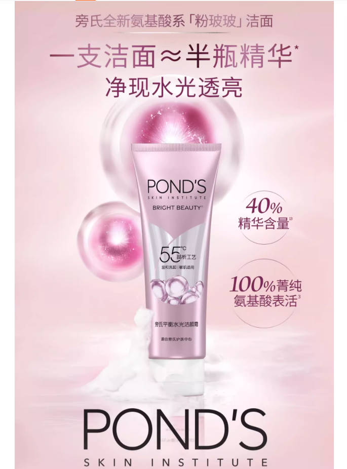 旁氏粉玻玻精华洗面奶女氨基酸系温和卸妆保湿烟酰胺敏感肌适用