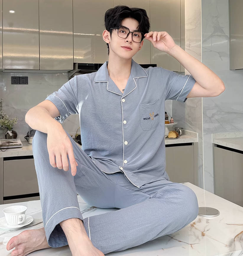 男士夏季天冰丝睡衣男生新款薄短袖大码青年初中生家居服套装