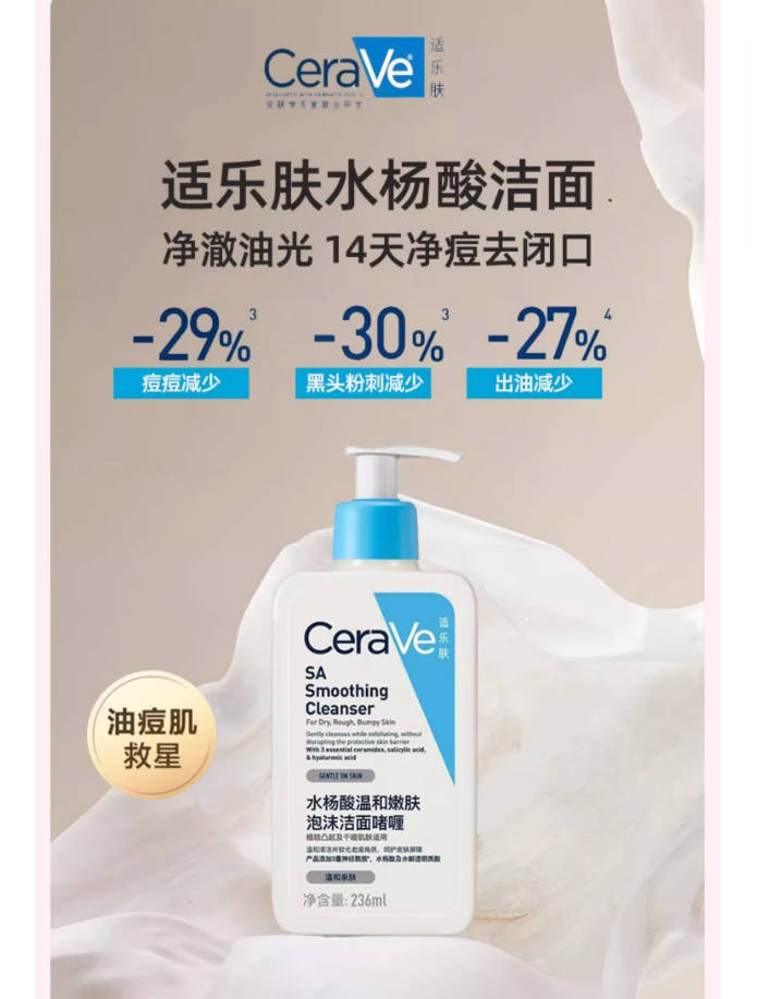 CeraVe适乐肤水杨酸氨基酸洗面奶敏感肌去黑头洁面