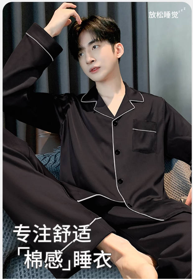 新款冰丝睡衣男春秋薄款大码宽松长袖家居服仿真丝绸夏季套装