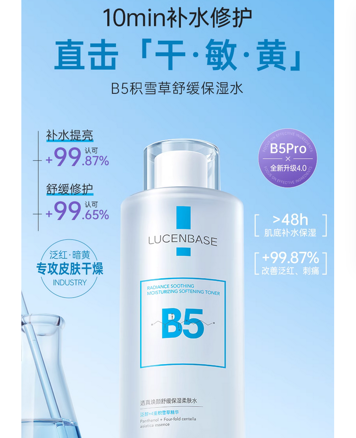 B5积雪草爽肤水补水保湿敷收缩毛孔舒缓精华修护肤化妆水男女正品